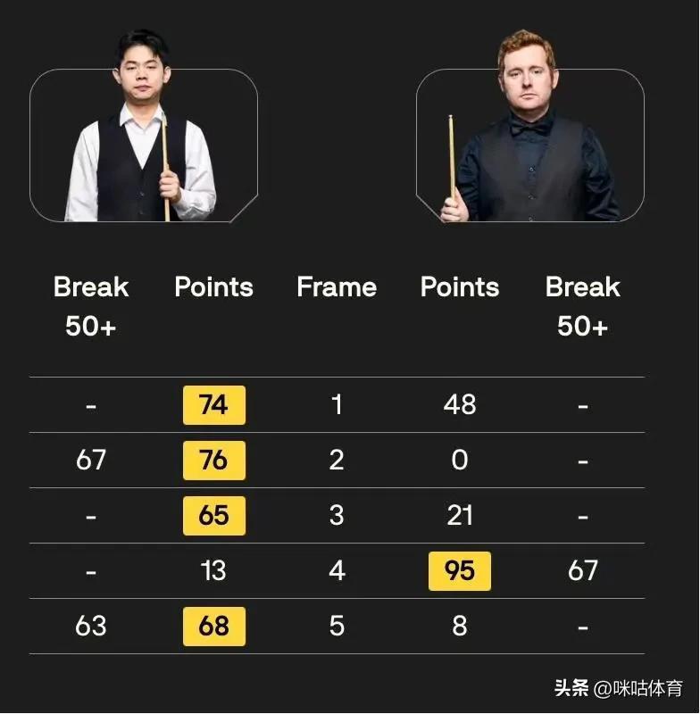 开场后袁思俊连胜三局并在第二局中打出单杆67分,西安黑灯舞交流群第四局沃拉斯顿打出单杆67分扳回一城,第五局袁思俊打出单杆63分锁定胜局。